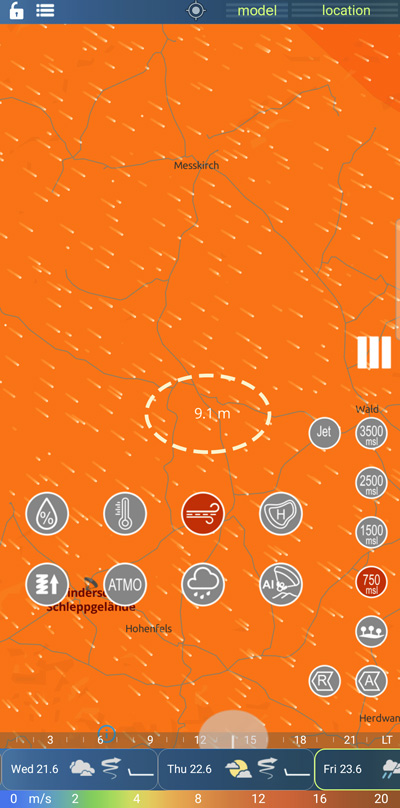A color map is displayed in the basic range 0..20 m/s (Units can be set in "settings".)